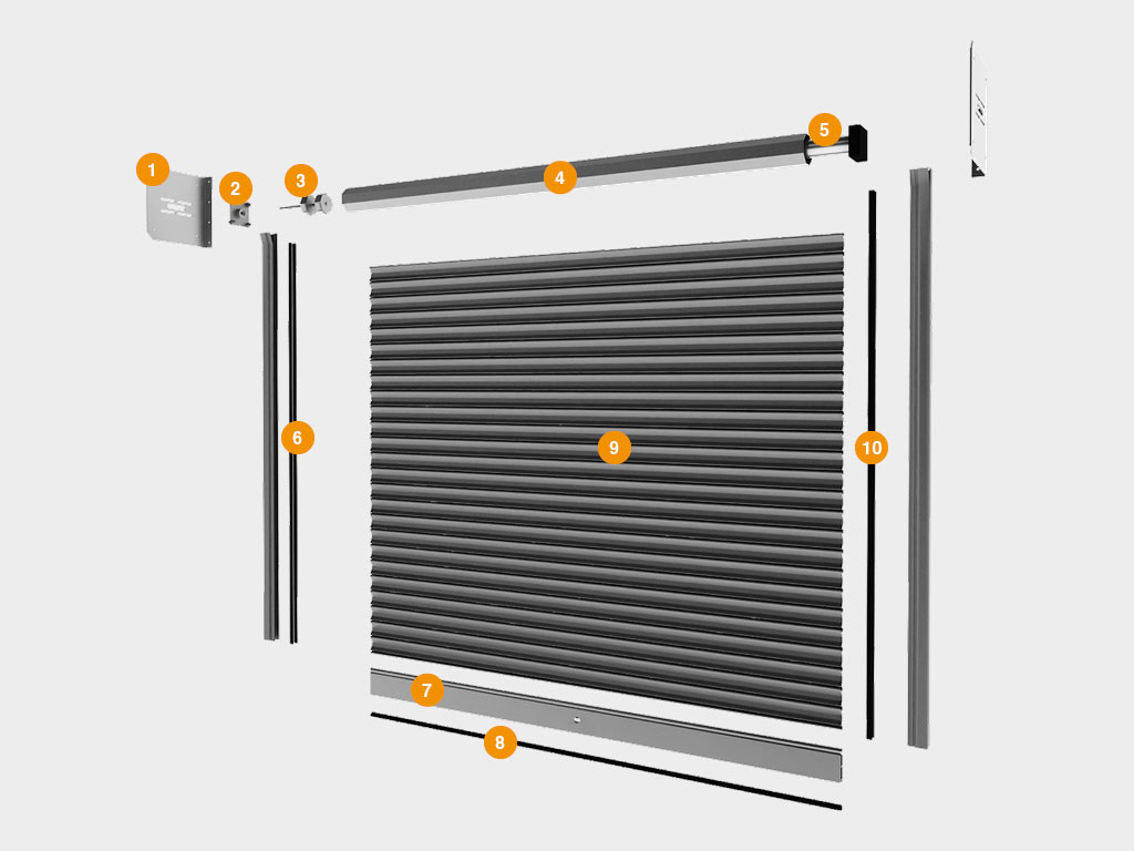 Полотно на валу в сборе состоит из вала с капсулами диаметром 102 мм, нарезки сплошного или перфорированного стального, оцинкованного профиля высотой 117 мм и толщиной 0,8 мм. Полотно может быть окрашено в любой из доступных для выбора цветов.Концевой профиль состоит из алюминиевого экструдированного профиля RA120E с толщиной стенки 2,5 мм и нижнего уплотнителя UP4.Комплект направляющих профилей состоит из двух стальных направляющих с уплотнителем. Направляющие профили могут быть окрашены в любой из доступных для выбора цветов.Электропривод внутривальный поставляется с комплектом метизов для крепления привода и суппорта с подшипником.Дополнительная комплектация