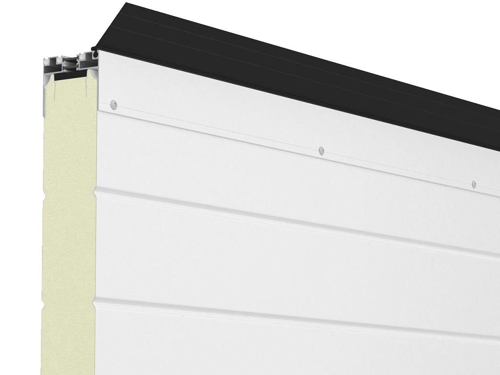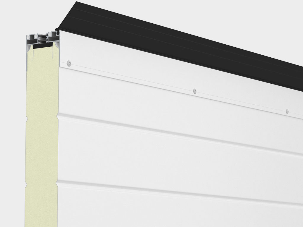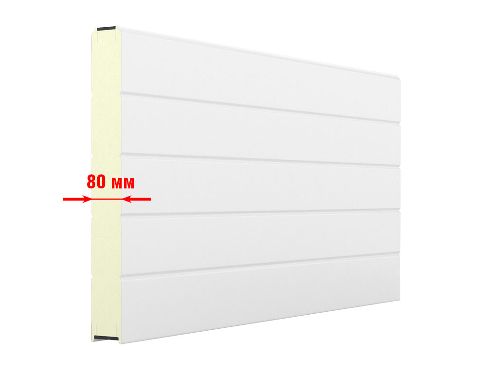 Полотно из сэндвич-панели толщиной 80 мм с пенополиуретановым наполнителем высокой плотности. Листы панели термически разделены вставкой энергофлексового уплотнителя, который препятствует промерзанию стыка панелей.Верхний алюминиевый профиль с терморазделением препятствует образованию конденсата и наледи в верхней части полотна ворот. Верхний уплотнитель сохраняет свою эластичность при отрицательных температурах и обеспечивает надежную герметизацию проема.Нижний алюминиевый профиль сохраняет терморазделение сэндвич-панели. Двойной уплотнитель нивелирует неровности пола, обеспечивает хорошую герметизацию. Греющий провод устанавливается в нижний уплотнитель при выборе опции «обогреваемый контур проема».Двойная система уплотнения проема: боковой двухлепестковый уплотнитель установлен между полотном и угловой стойкой, внешний двухлепестковый контур уплотнения — между проемом и щитом. Проем уплотняется четырьмя уплотнителями одновременно, дополнительные воздушные камеры обеспечивают максимально надежную герметизацию.Системы направляющих из стали толщиной 2 мм — надежное решение, обладающее повышенным запасом прочности.Пружинный механизм на торсионных пружинах, рассчитанный на 25 000 циклов, обеспечивает долговечность конструкции ворот.Устройство защиты от обрыва троса устанавливается в качестве нижнего кронштейна на полотно ворот. В случае обрыва троса механизм срабатывает и предотвращает падение полотна ворот.Дополнительная комплектация