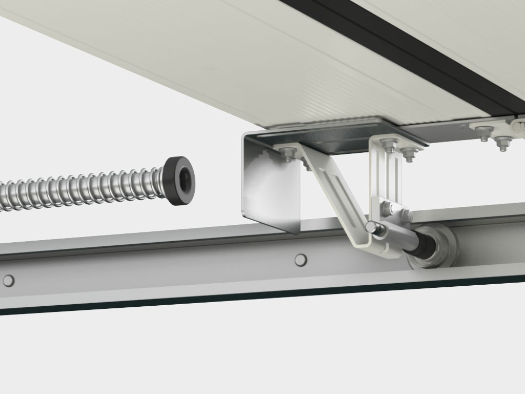 Площадка-упор устанавливается на верхнюю панель, увеличивая площадь сопряжения демпфера амортизатора и полотна ворот. Узел исключает возникновение аварийных ситуаций, вызванных неправильной установкой и регулировкой амортизаторов монтажными бригадами.