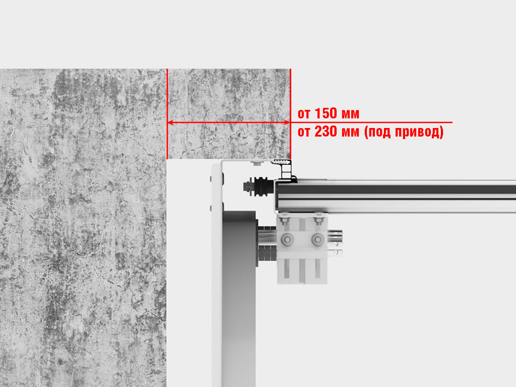 Параметр Показатель Высота проема, мм 2 000–3 700 Ширина проема, мм 2 000–5 000 Притолока, мм От 430 Пристенки, мм От 150; со стороны установки привода — от 230 Зона применения