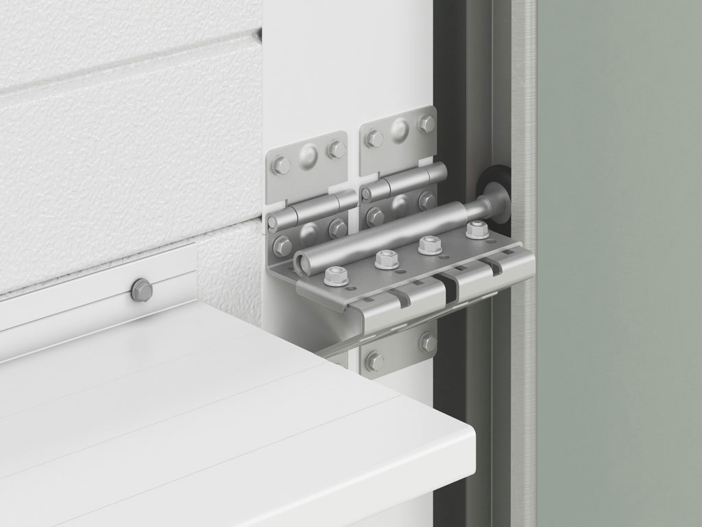 Эксклюзивная опция — силовая монтажная конструкция с системой захвата полотна обеспечивает жесткое положение горизонтальных направляющих при динамических нагрузках и дополнительную страховку от падения полотна ворот.