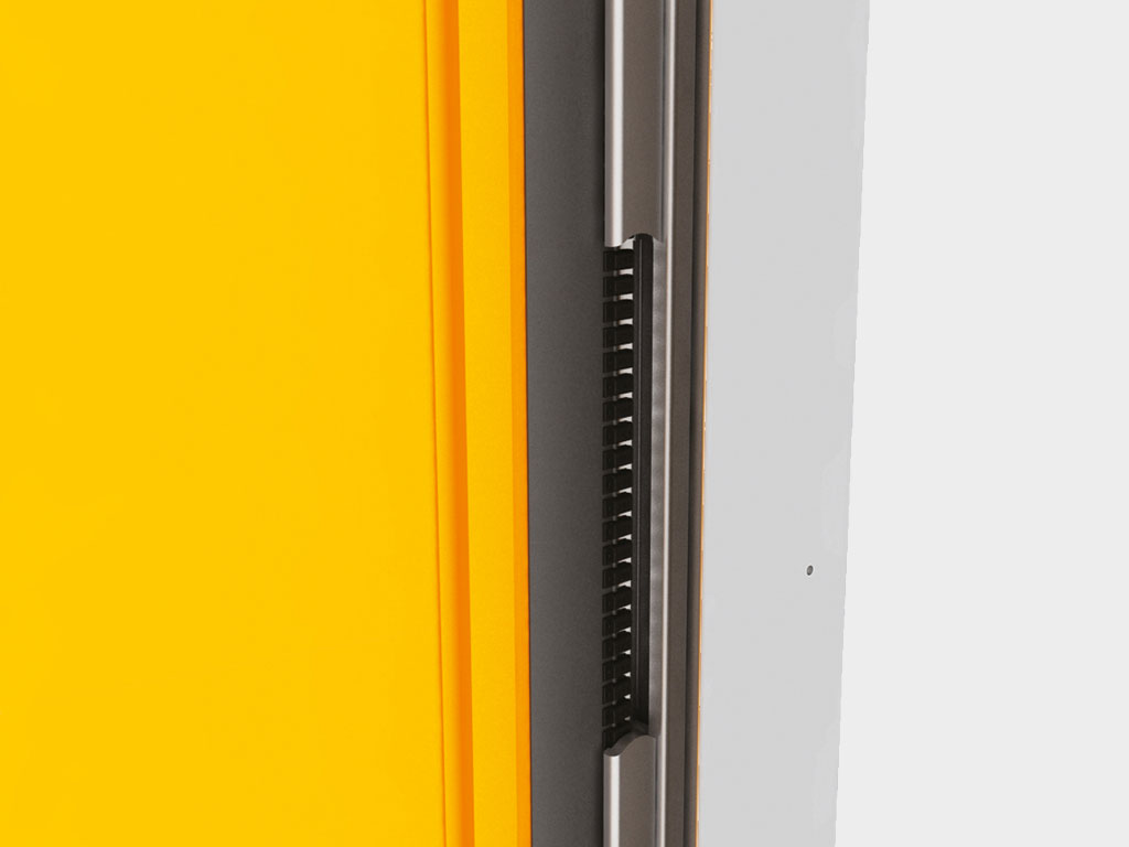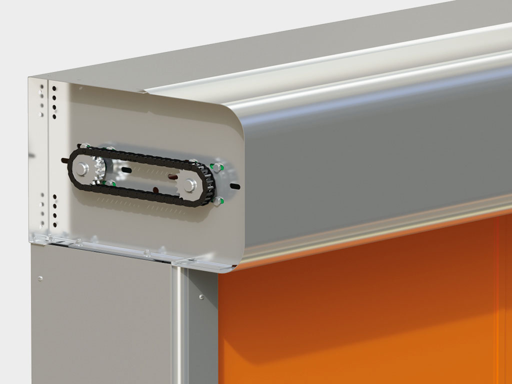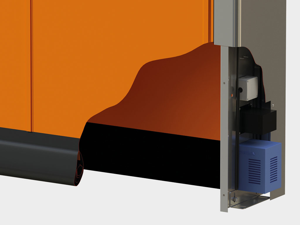Блок управления с частотным преобразователем в стальном окрашенном корпусе, 300 × 400 × 150 мм; класс защиты – IP54.Фотоэлементы устанавливаются на высоте 500 мм от пола, а также в верхних точках боковых стоек для выявления некорректной размотки полотна при открывании.Дополнительная комплектация
